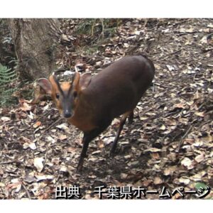 【キョン】についてですが、千葉県では害獣として、【キョン】の被害が報告されています。【キョン】は、小型のシカ科の動物で、高さは40㎝ほど、本来は中国南部や台湾に生息していて、千葉県には生息していませんでした。平成13年に閉園した勝浦市にあった民間観光施設から十数頭が逃げ出したことがきっかけとされいます。