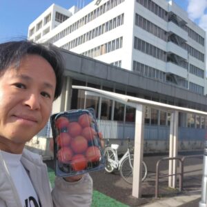 今日は鎌ケ谷市役所での朝市からスタート。おすすめのフルーツトマトを購入しました。早起きしたら、是非ご来場ください。